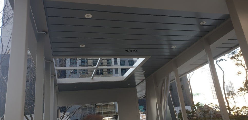 의뢰하신 아파트 외부 휴게시설 천정 시공입니다.