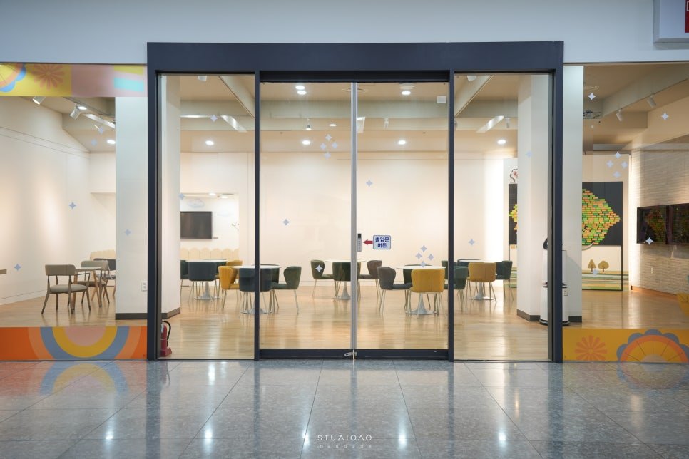 저희 스튜디오디오는 기존의 밋밋했던 출입구 창에 그래픽 사인을 디자인하고
