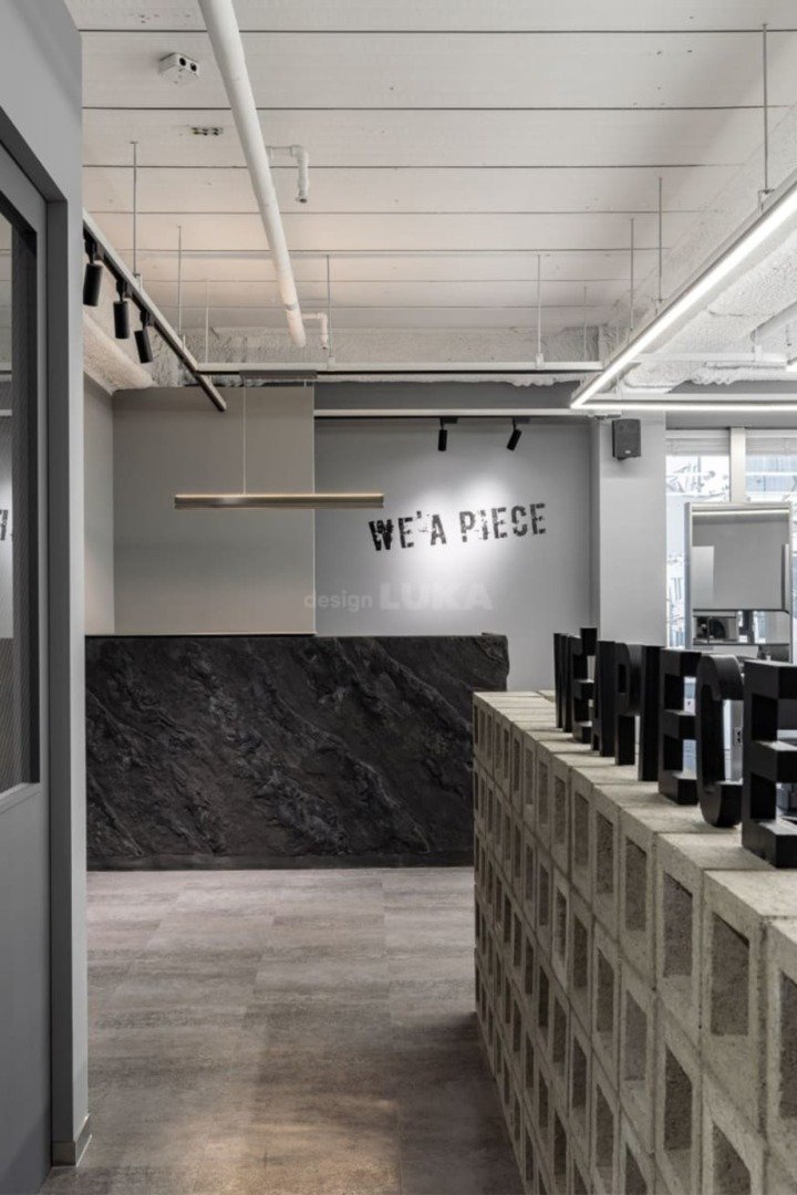 WE’A PIECE는 ‘하나의 작은 조각들이 모여 뷰티(Beauty)의 어원을 만든다’는 의미를 가지고 있습니다.브랜드의 가치를 형태적으로 풀어내어, 입구부터 그 메시지를 자연스럽게 전달할 수 있도록 디자인했습니다. 엘리베이터 문이 열리면 가장 먼저 보이는 곳에 큐블럭으로 파티션을 기획해 단순한 공간 구획의 기능뿐만 아니라 브랜드 철학을 담아냈습니다.