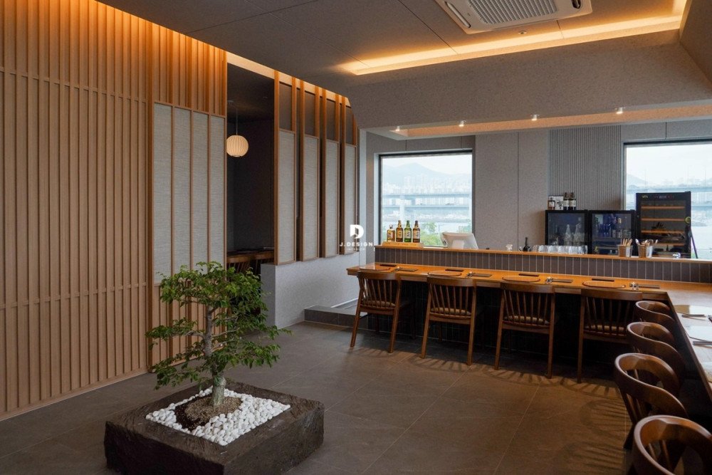 따뜻한 색감의 조명과 고급스러운 그레이톤, 안정감을 주는 우드가 조화롭게 어우러져 프리미엄 오마카세에 걸맞는 인테리어로 완성했습니다.