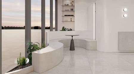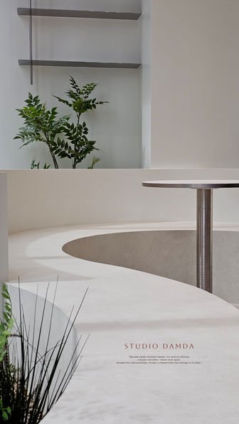 and quietly reaches the styling seats. Within one continuous mass, movement remains uninterrupted, and emotions slowly unfold. The curved bench turns waiting into a quiet scene, while restrained tones reveal the delicate texture of light. Here, depth matters more than decoration, and attitude matters more than form.