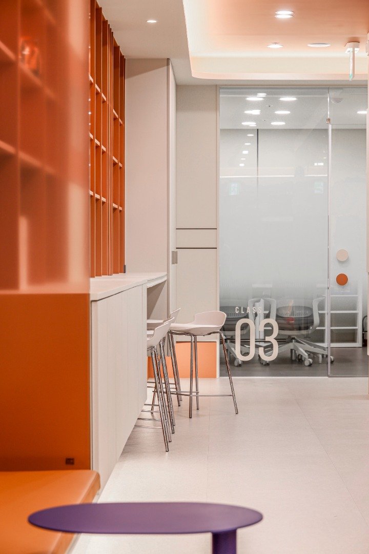 기능 중심의 교육공간을 넘어, 경험 중심의 층으로 재구성된 인테리어다.