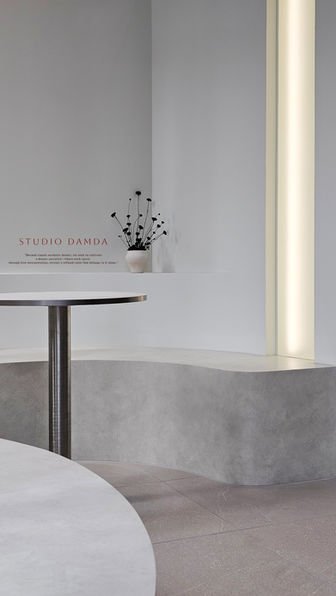 and quietly reaches the styling seats. Within one continuous mass, movement remains uninterrupted, and emotions slowly unfold. The curved bench turns waiting into a quiet scene, while restrained tones reveal the delicate texture of light. Here, depth matters more than decoration, and attitude matters more than form.